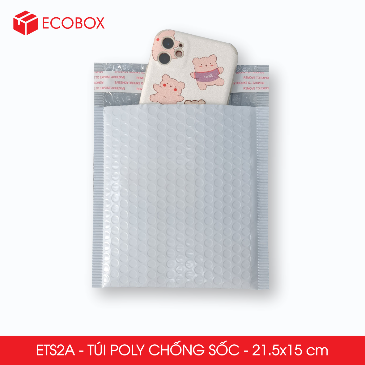 Kích thước sản phẩm: ETS2A - 21,5x15 cm Hình thức: Dạng túi poly lót bong bóng khí (chống sốc) Danh mục: Sản phẩm vừa đóng gói vừa chêm chèn chống va đập Sản phẩm: Túi poly lót bong bóng khí (màng xốp hơi , Bubble wrap) Công năng: Bảo vệ trực tiếp sản phẩm, đặc thù các sản phẩm dễ vỡ, chêm chèn chống va đập. Khác với hộp carton có được chêm chèn sản phẩm bằng mút xốp, túi poly lót bong bóng khí, vì vậy khi bảo vệ bằng màng xốp hơi, túi giấy lót bóng khí (chống sốc) sẽ giúp cho sản phẩm được bảo vệ an toàn nhất so với chêm chèn bằng mút xốp