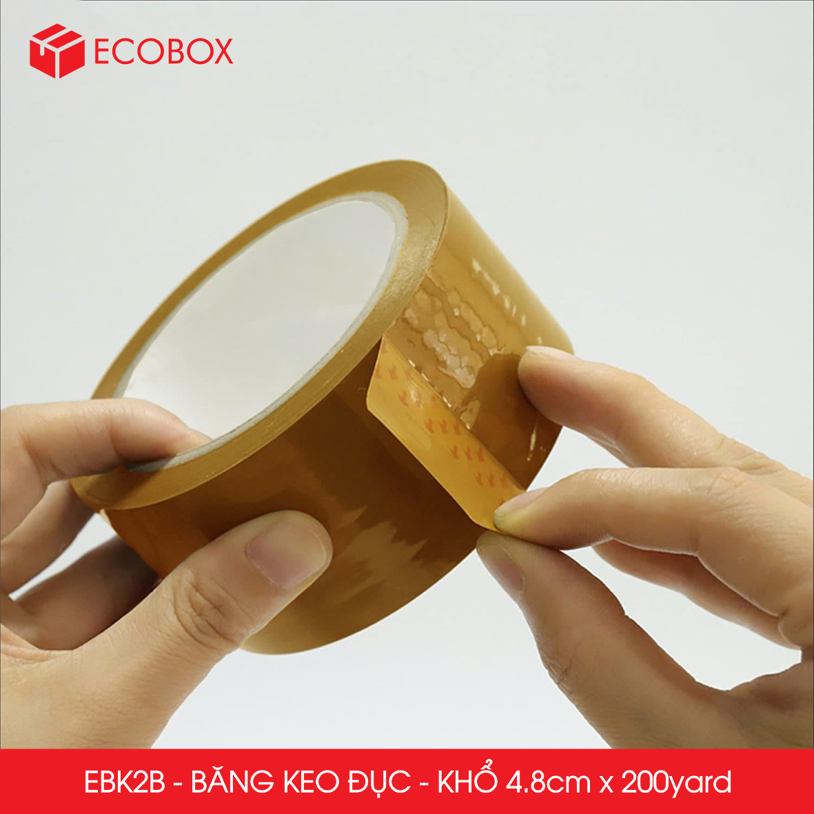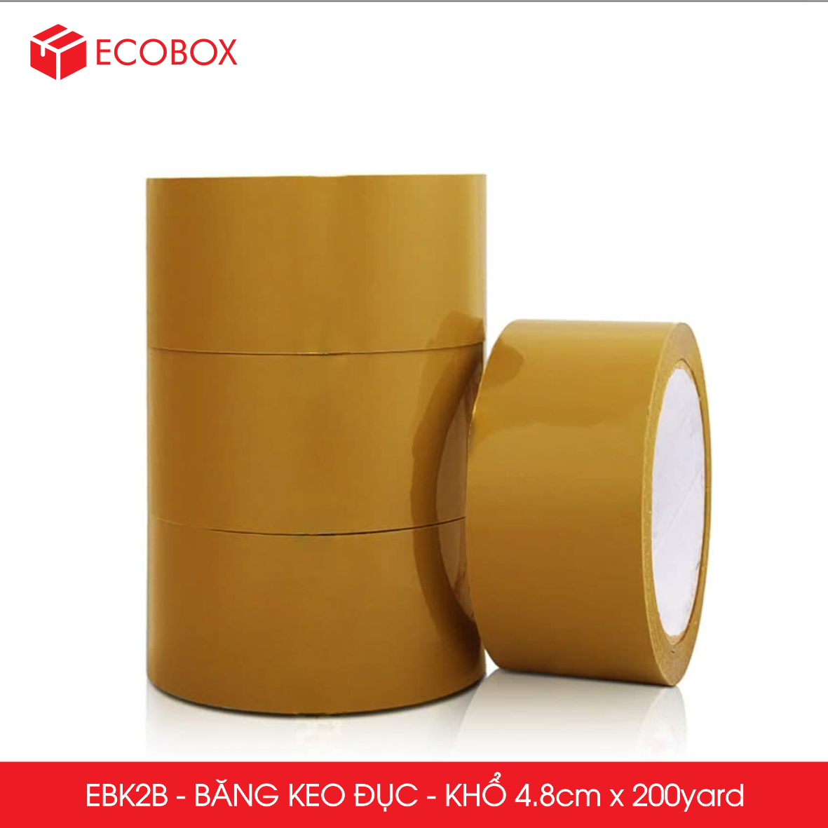 THÔNG SỐ KỸ THUẬT Chất liệu: Màng OPP Kích thước: Khổ 4,8cm x 200yard Lõi giấy: 5.5mm Khối lượng: 6 cuộn/ 1,8kg/ cây Độ dày: 50 mic Mã sản phẩm - Màu sắc • EBK2A - Trắng trong • EBK2B - Vàng đục