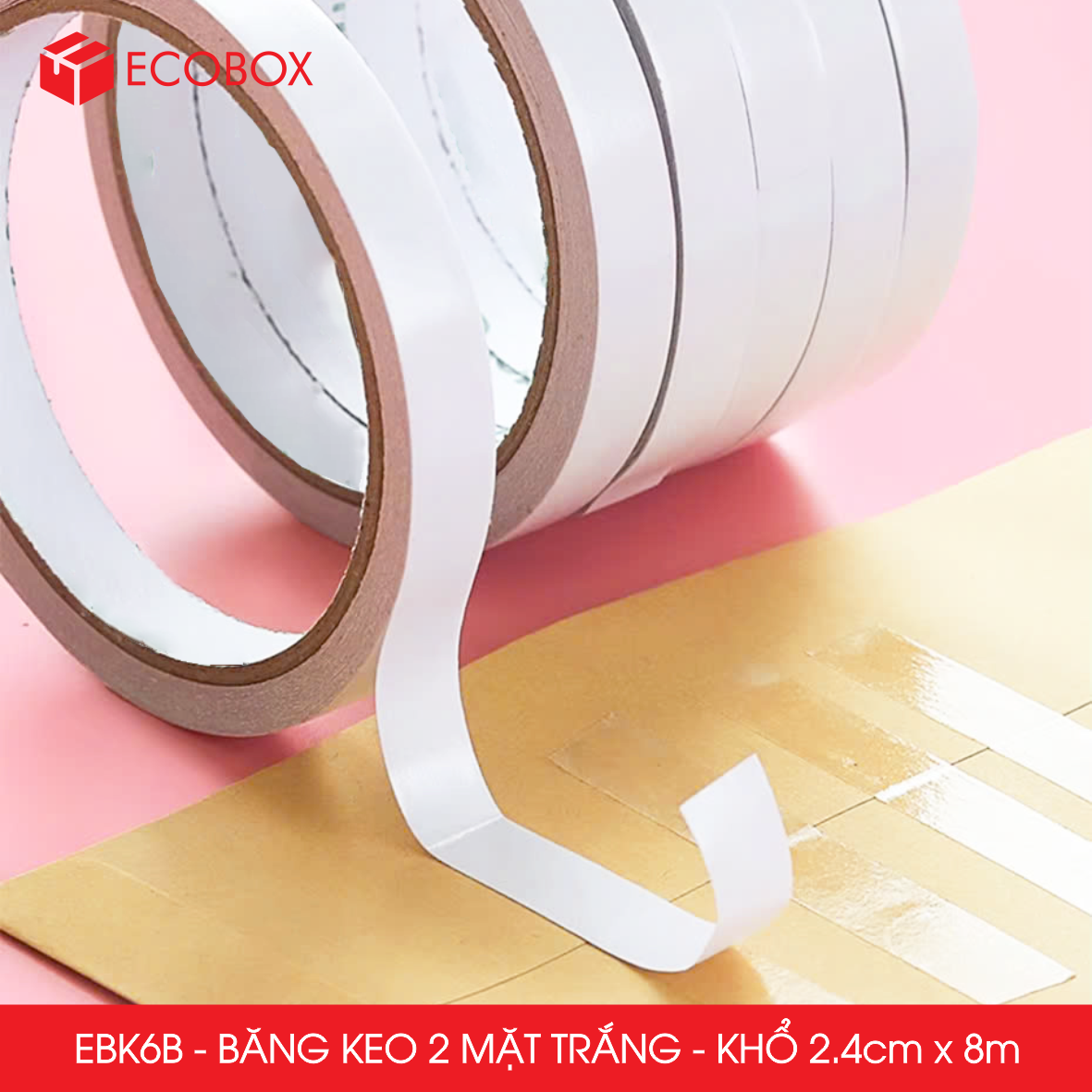 ĐẶC ĐIỂM SẢN PHẨM Độ bám dính cao: Keo dính chất lượng cao trên cả hai mặt, giúp dán chắc chắn trên nhiều bề mặt như giấy, nhựa, vải, kim loại, gỗ, và kính. Keo dính mỏng, sử dụng tiện lợi: Dễ dàng kéo ra khỏi cuộn và xé bằng tay, không làm tăng độ dày của vật liệu khi dán. Ứng dụng rộng rãi: Băng dính hai mặt được dùng nhiều trong việc dán làm thủ công, trang trí, gói quà, dán tài liệu, tranh ảnh.