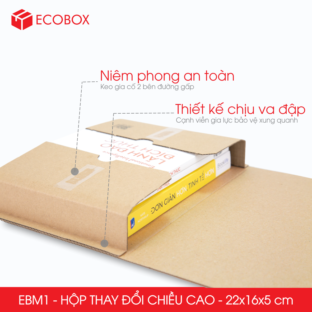 - Gia tăng khả năng bảo vệ sản phẩm: đường viền cạnh gia cố xung quanh mỗi chiều hộp là 1cm giúp chống va đập sản phẩm đóng gói bên trong.