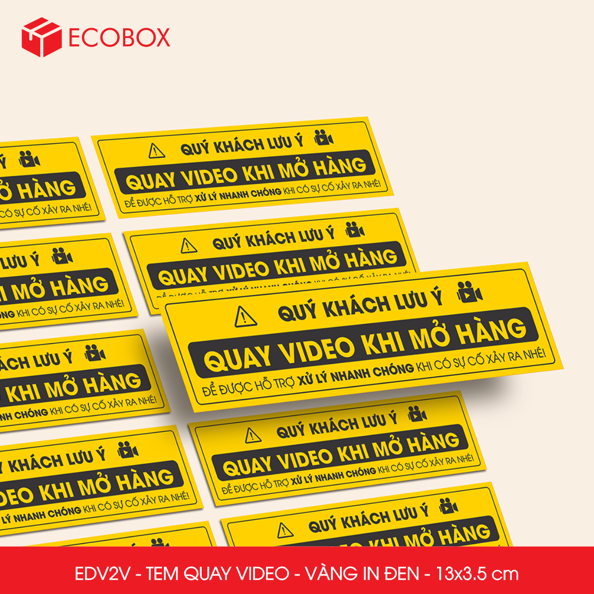EDV2V - Tem dán quay video - Vàng in trắng - 13x3,5 cm
