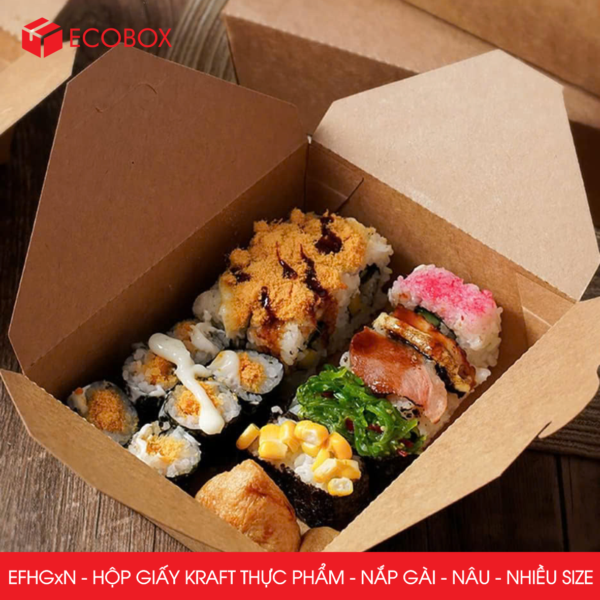EFHG2N - Hộp giấy Kraft thực phẩm - Nắp gài - Nâu 1.000ml (Miệng: 16.5x13.3 cm - Đáy: 15.5x12 cm - Cao: 5 cm)