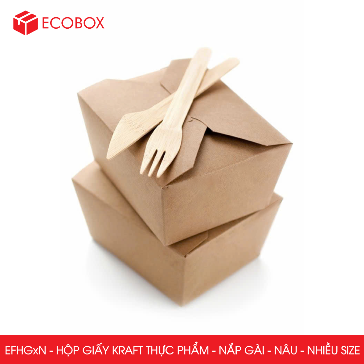 Hộp bao bì thực phẩm nắp gài với chất liệu giấy Kraft giấy cứng cáp, chịu nhiệt tốt, là sản phẩm sử dụng một lần và sau khi sử dụng hoàn toàn có thể phân hủy sinh học, không gây tác động xấu đến môi trường.