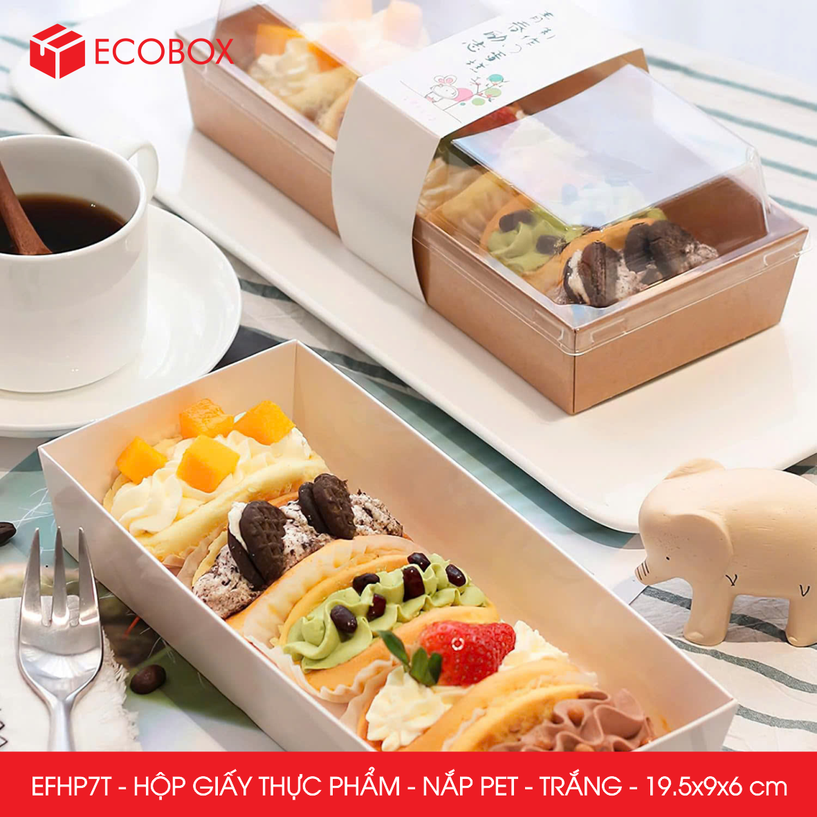 EFHP7T - Hộp giấy kraft thực phẩm - Nắp PET - Trắng - 19.5x9x6 cm