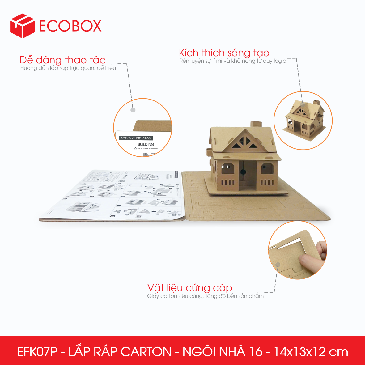 EFK07P - Nhà giấy lắp ráp bằng carton - Mẫu 16 - 14x13x12 cm
