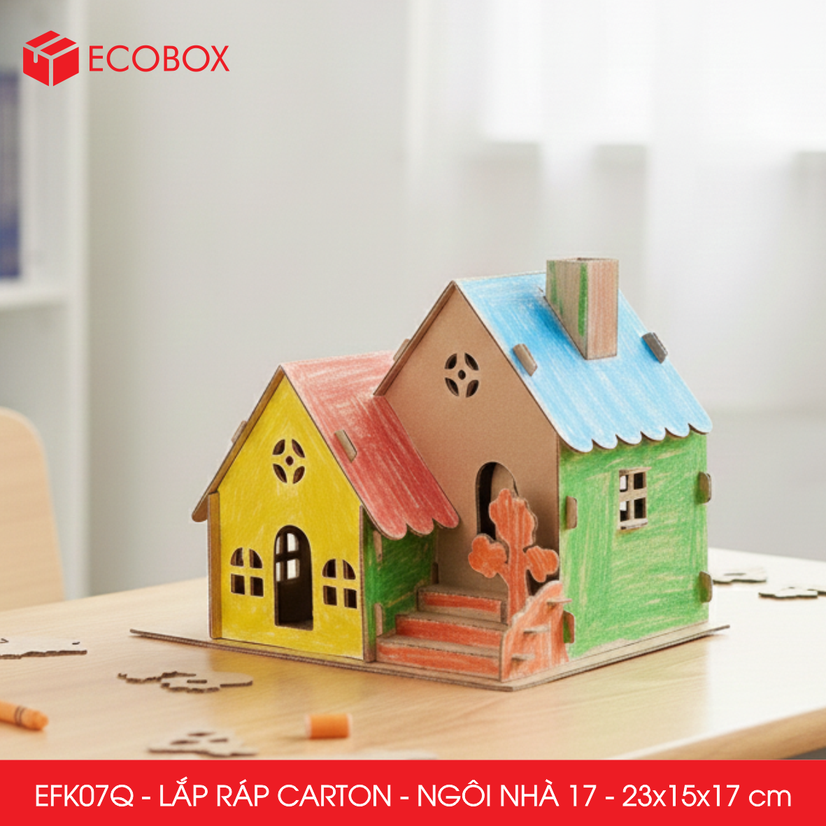 EFK07Q - Nhà giấy lắp ráp bằng carton - Mẫu 17 - 23x15x17 cm