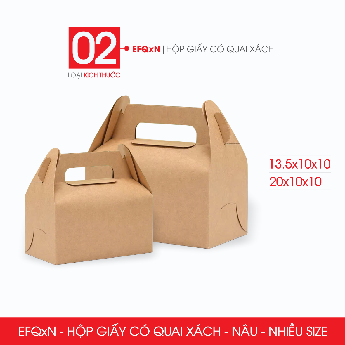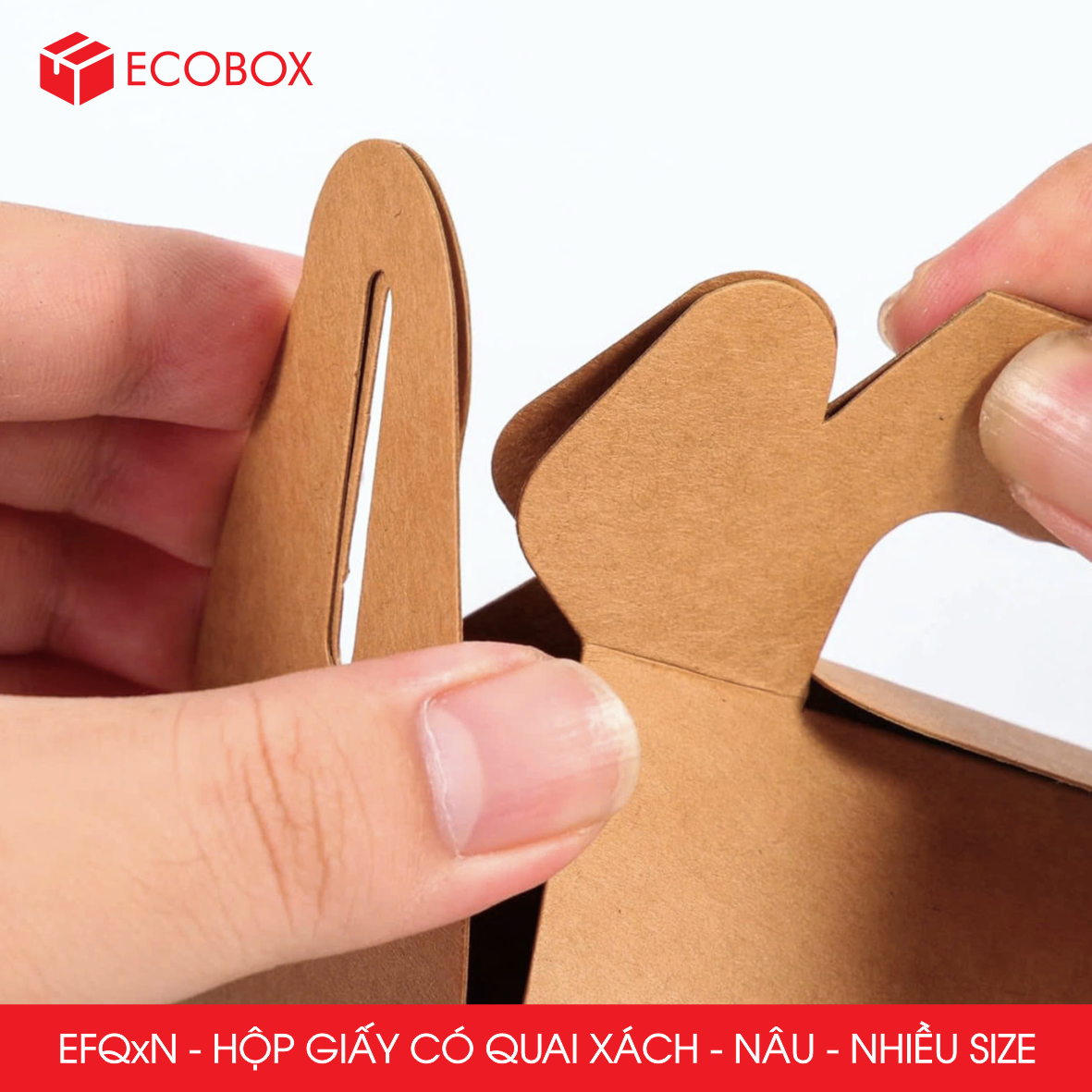 Hộp giấy có quai xách được sản xuất từ giấy kraft, ngày càng được ưa chuộng dùng để đựng thực phẩm nhằm thay thế các loại hộp xốp, nhựa, túi nilon nhờ khả năng phân hủy sinh học từ đó giúp bảo vệ môi trường. Thiết kế hộp có thêm quai xách tăng thêm sự thuận tiện cho người dùng.