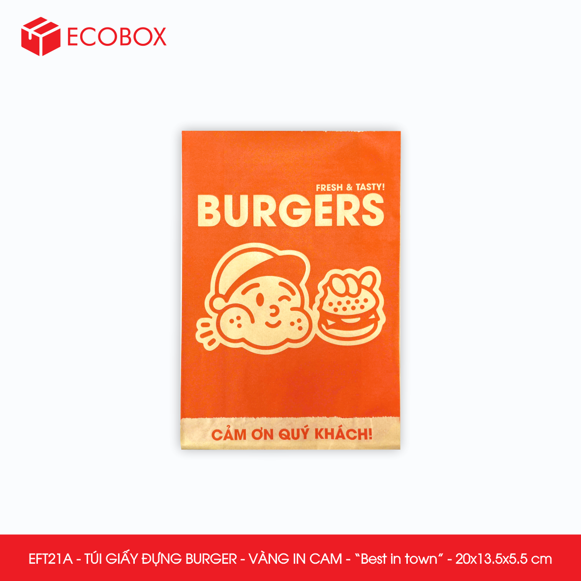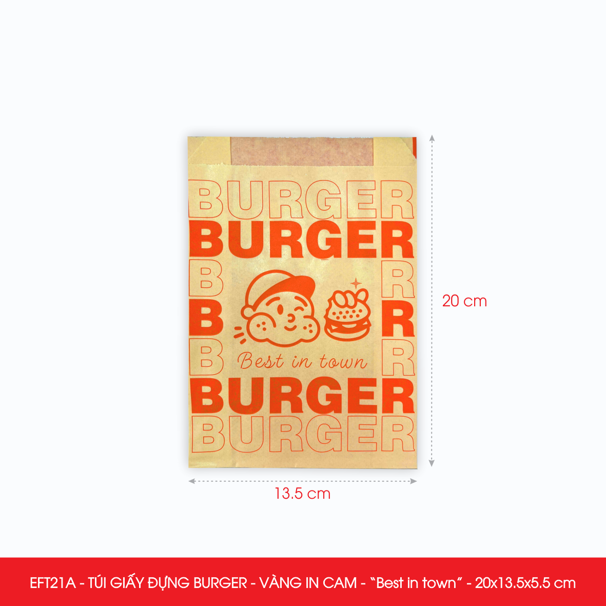 • EFT21A - Túi giấy đựng burger - Vàng - In cam - ""Best in town""