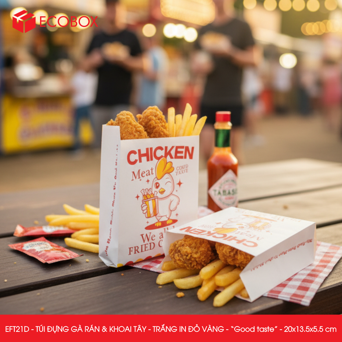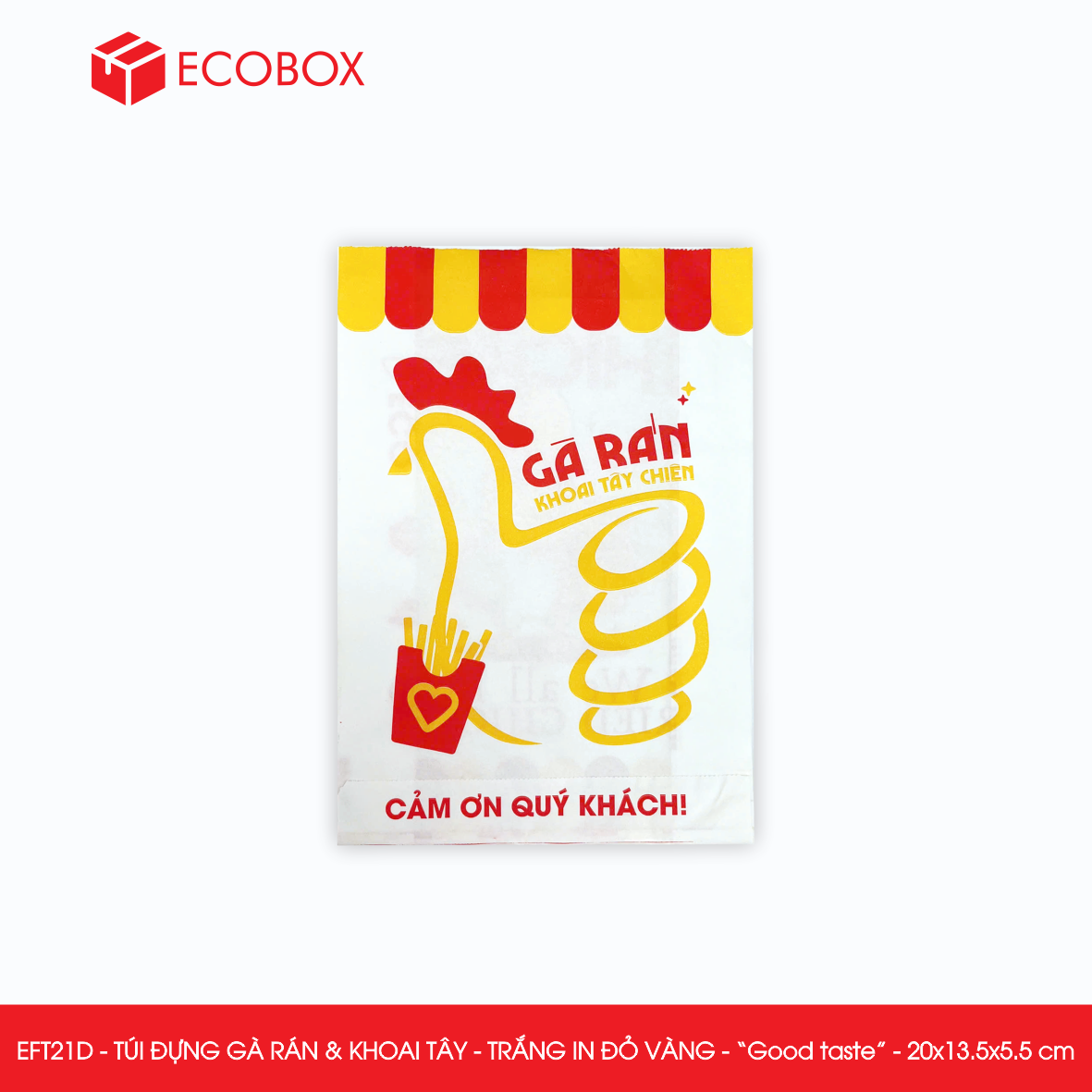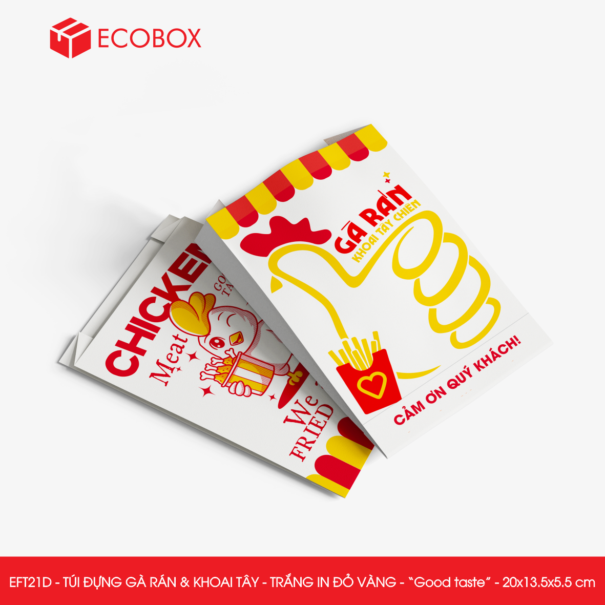 • EFT21D - Túi giấy đựng gà rán & khoai tây chiên - Trắng - In đỏ & vàng - ""Good Taste""
