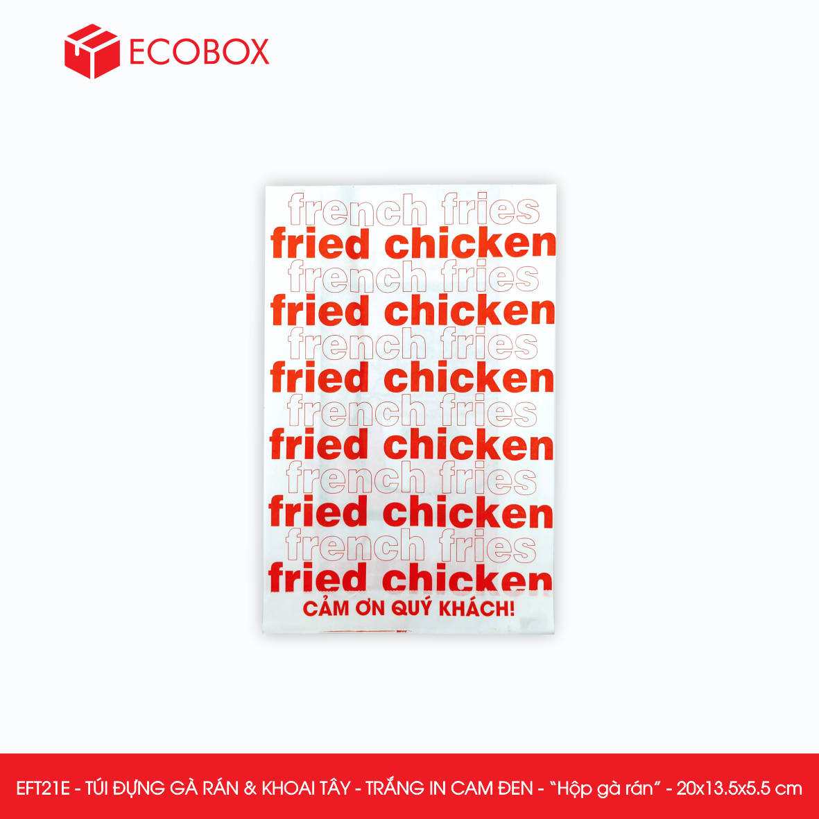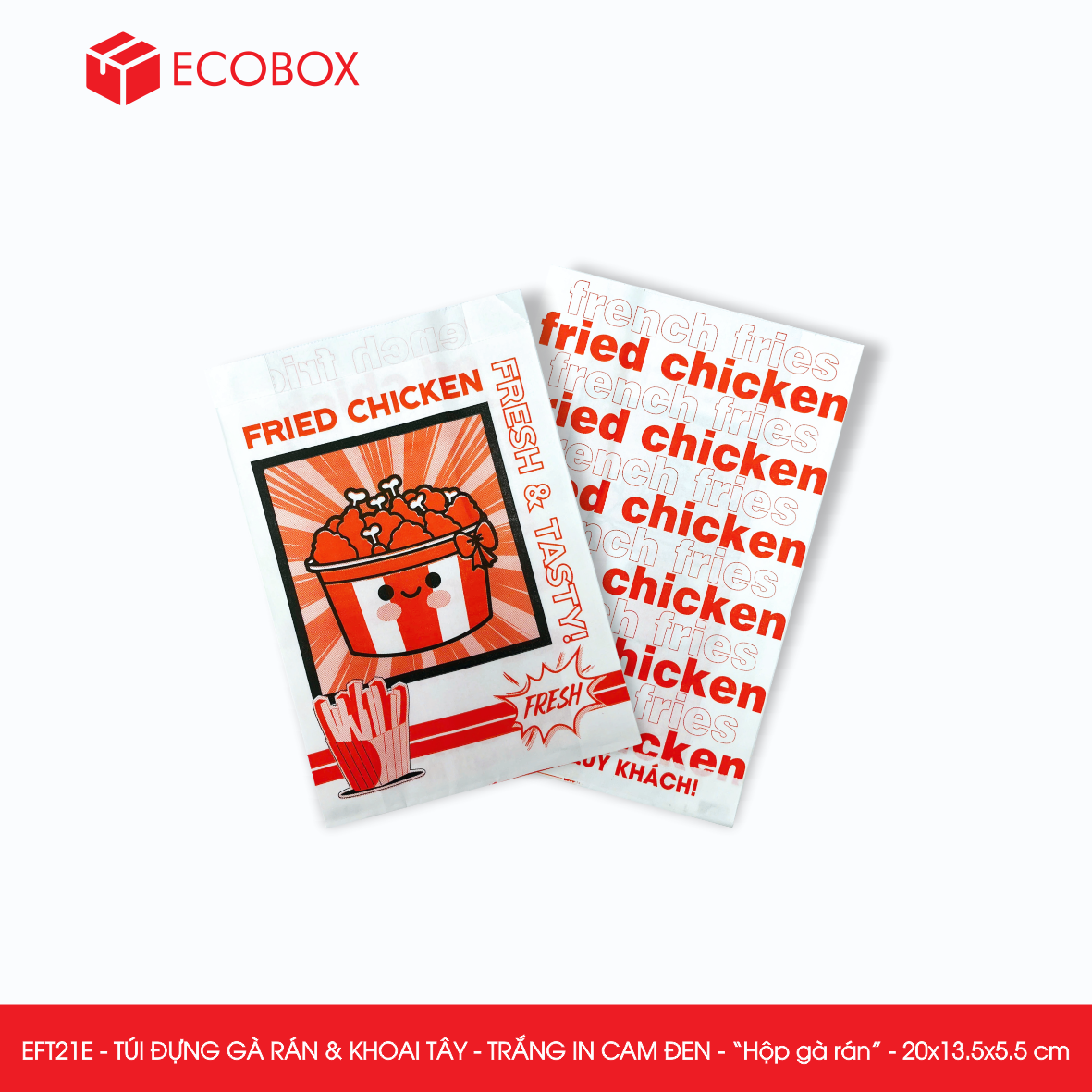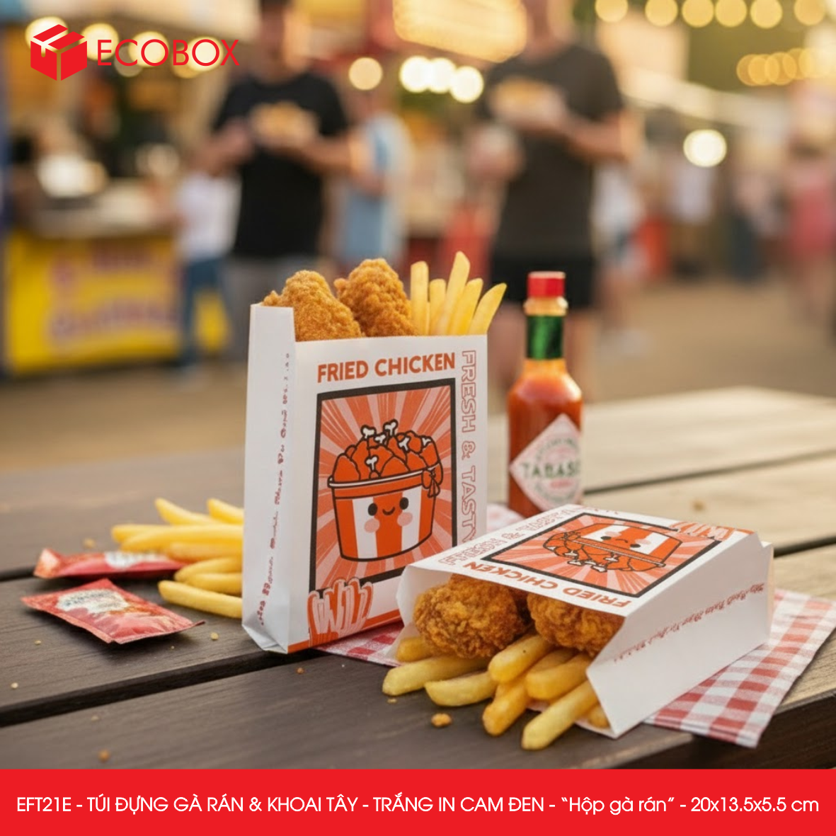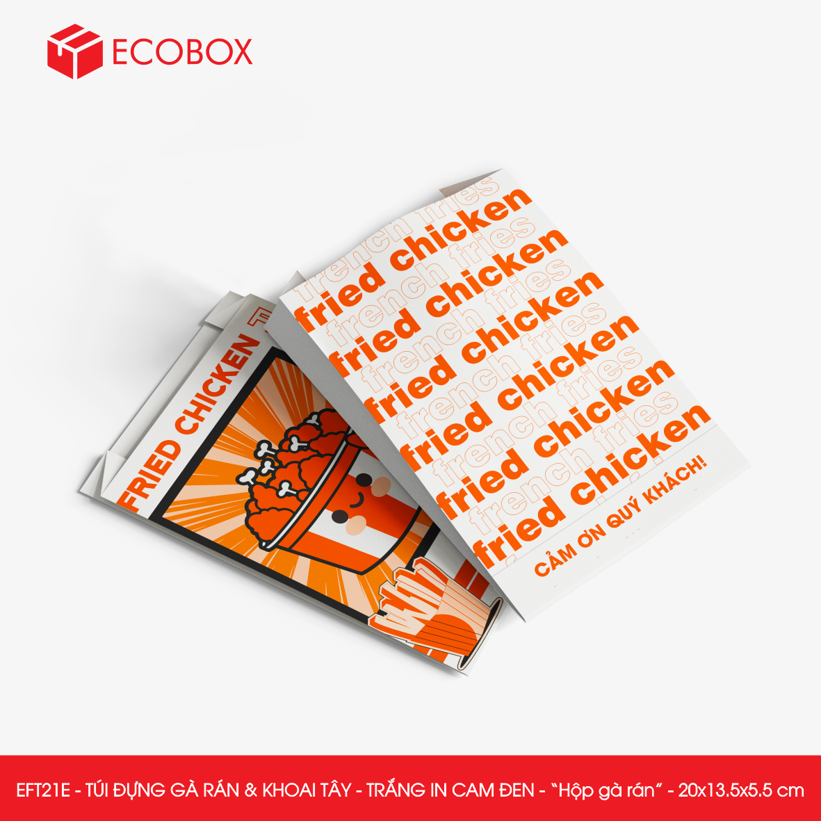 • EFT21E - Túi giấy đựng gà rán & khoai tây chiên - Trắng - In cam & đen - ""Hộp gà rán""