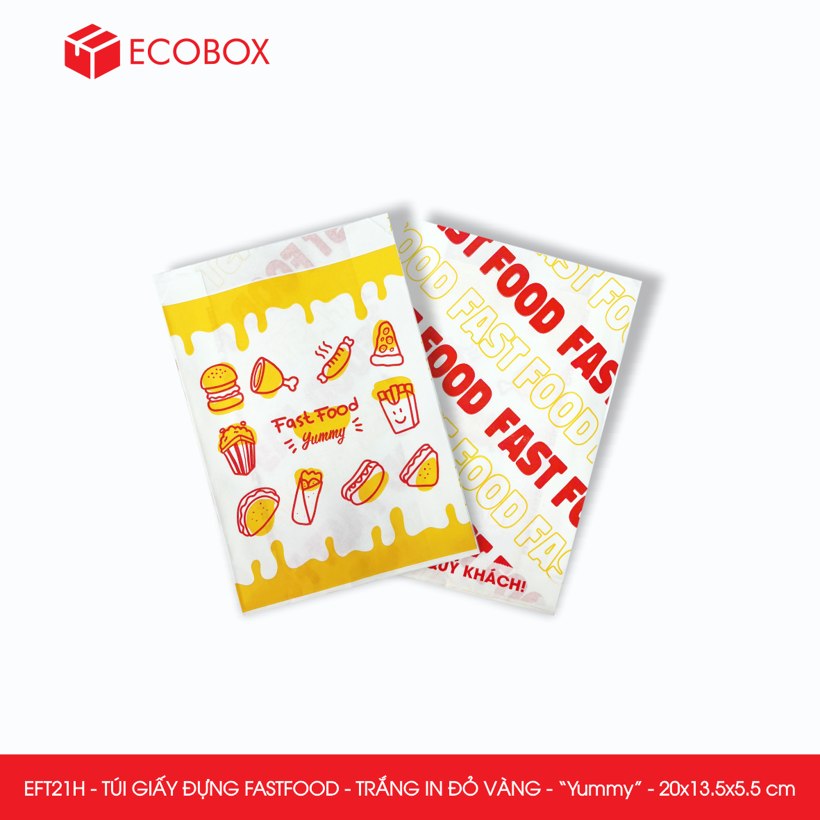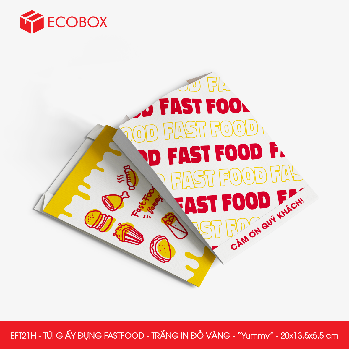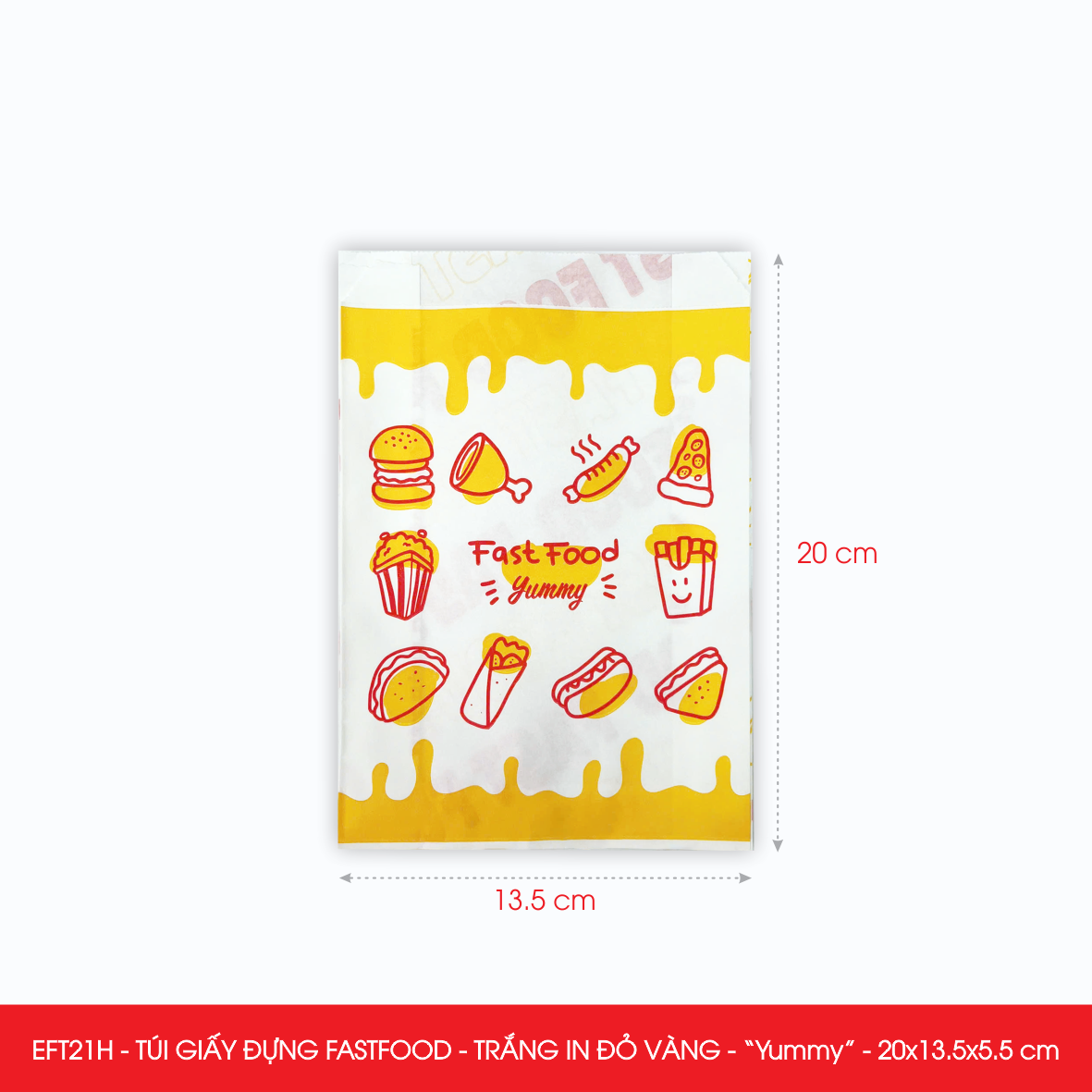 • EFT21H - Túi giấy đựng fastfood - Trắng - In đỏ & vàng - ""Yummy""