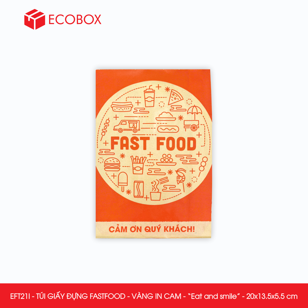 • EFT21G - Túi giấy đựng fastfood - Trắng - In cam - ""Eat and Smile""