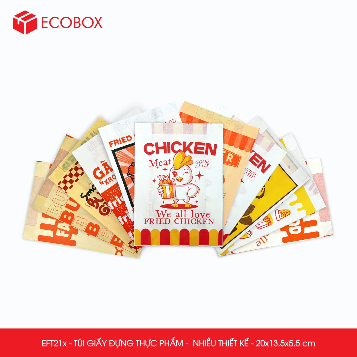 • EFT21F - Túi giấy đựng gà rán & khoai tây chiên - Trắng - In cam - "Gà đầu bếp"