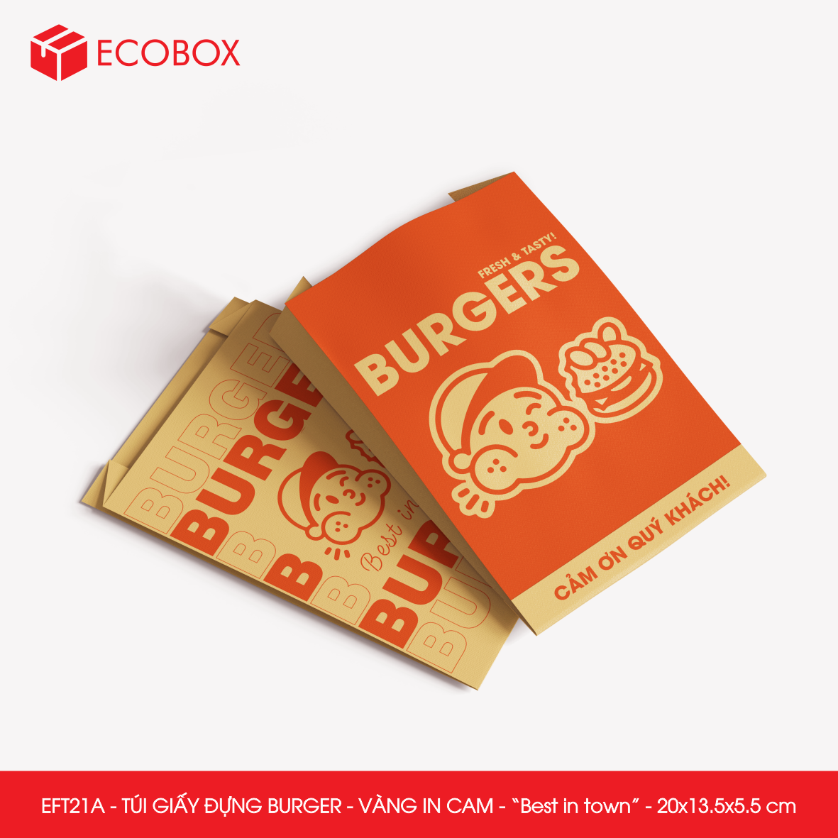 • EFT21A - Túi giấy đựng burger - Vàng - In cam - "Best in town"
