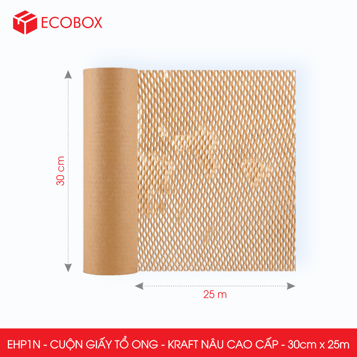 QUY CÁCH KỸ THUẬT SẢN PHẨM Quy cách cuộn (khổ x mét tới): 0.3m x 25m Đường kính lõi: 1.5 inch Loại giấy: Kraft Nâu Định lượng giấy: 80gsm Màu sắc giấy: Nâu
