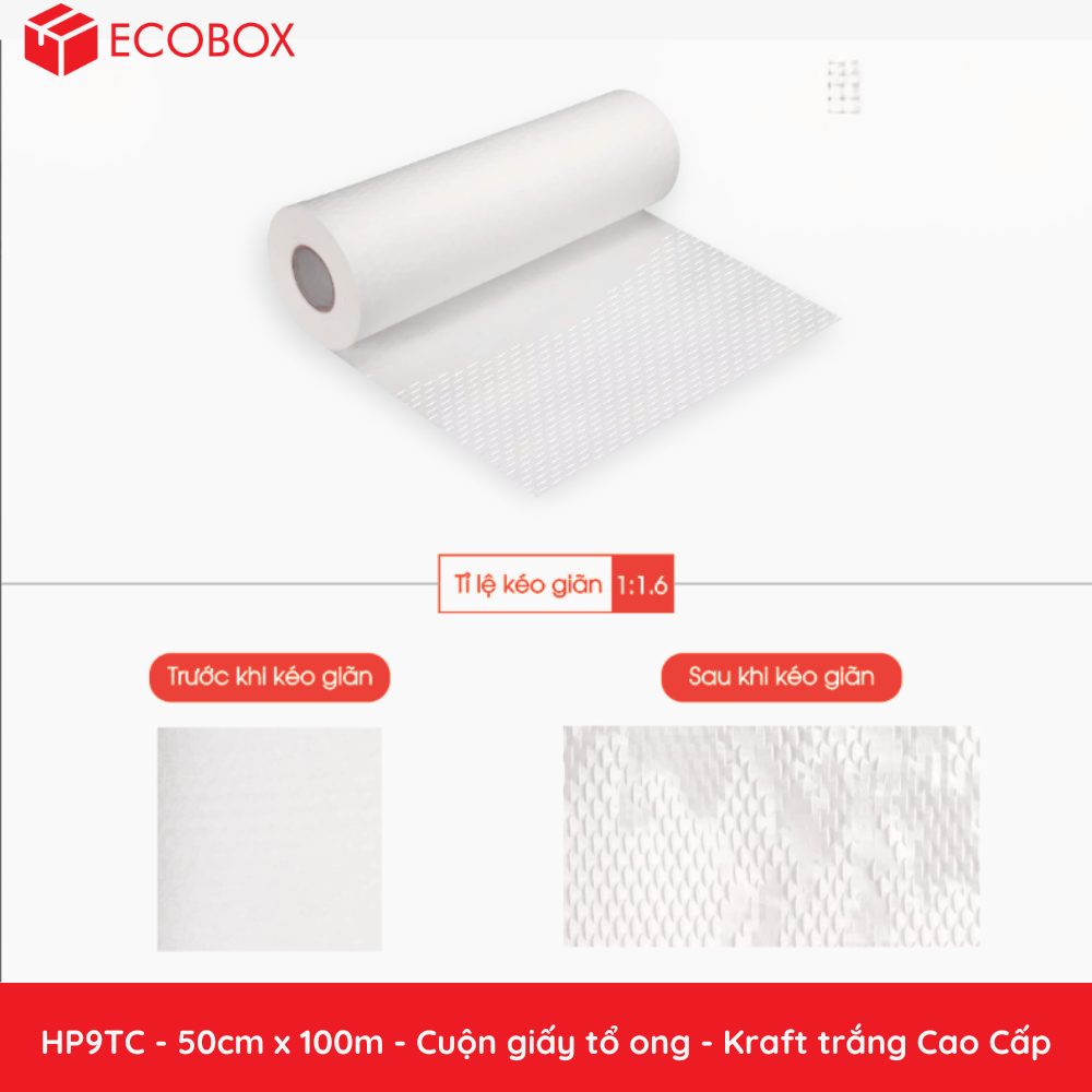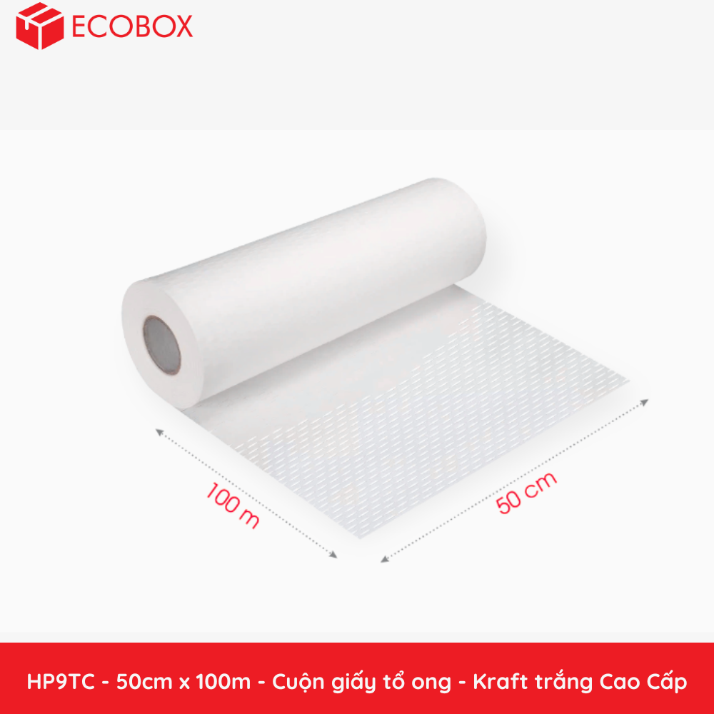 EHP9TC - 50cm x 100m - Cuộn giấy tổ ong - Kraft trắng Cao Cấp