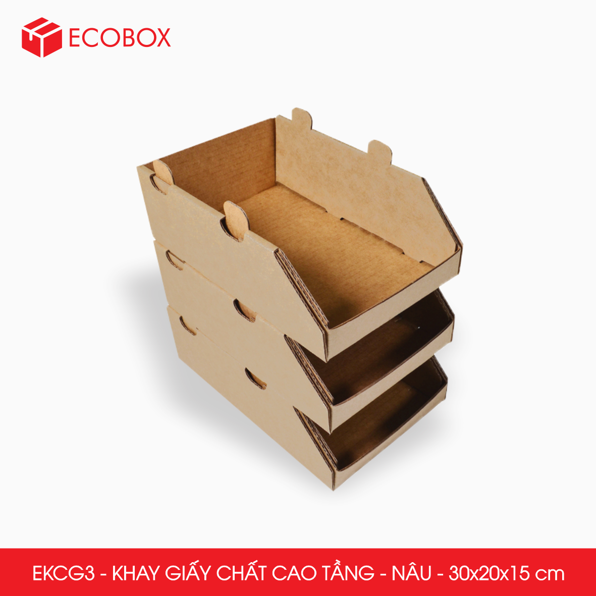 EKCG3 - Khay giấy chất cao tầng - Nâu - 30x20x15 cm