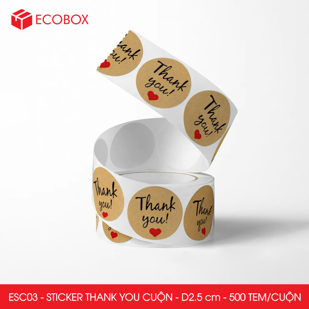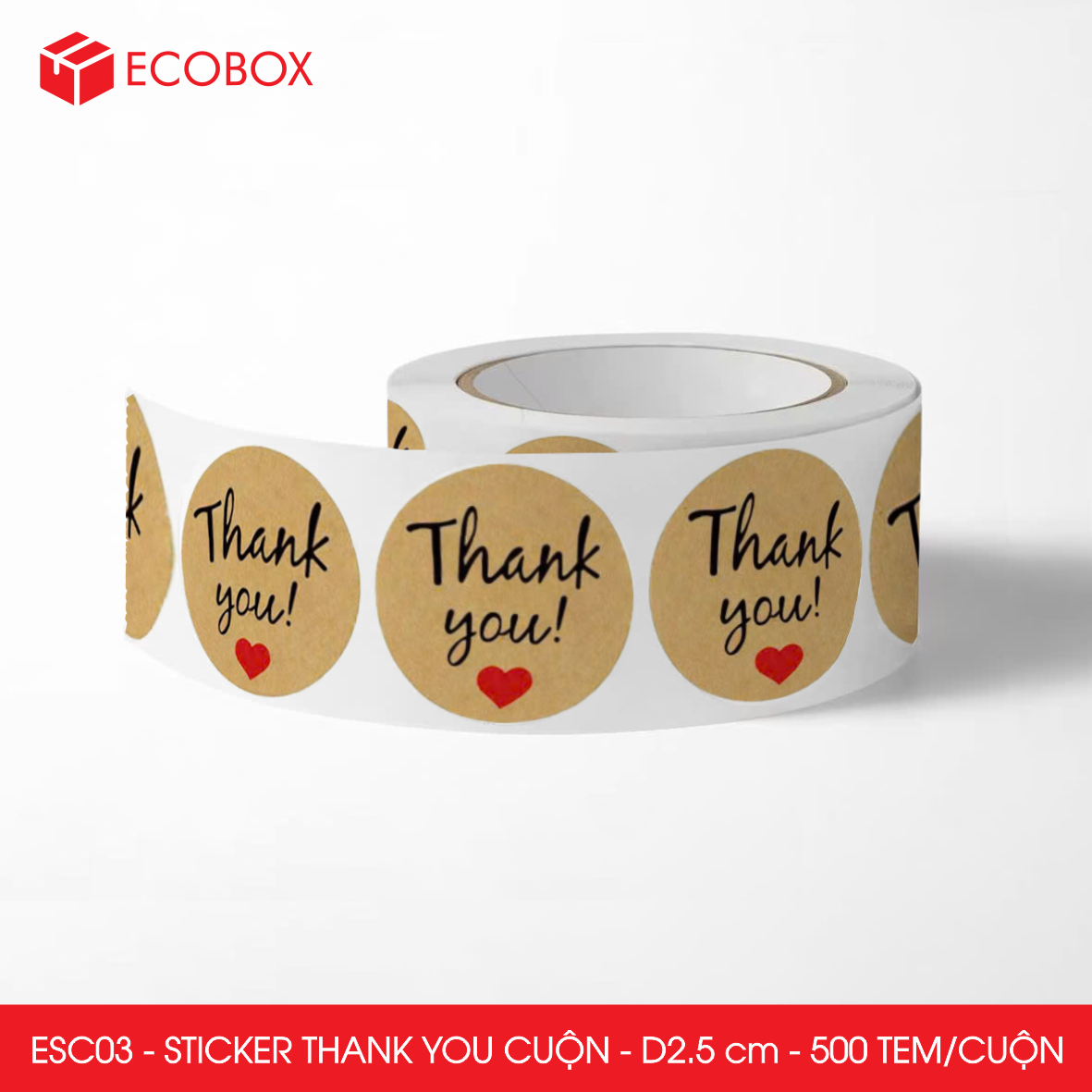 ESC03 - Cuộn Sticker Thank You tròn - Một thiết kế - 2.5cm - [500 tem/cuộn]