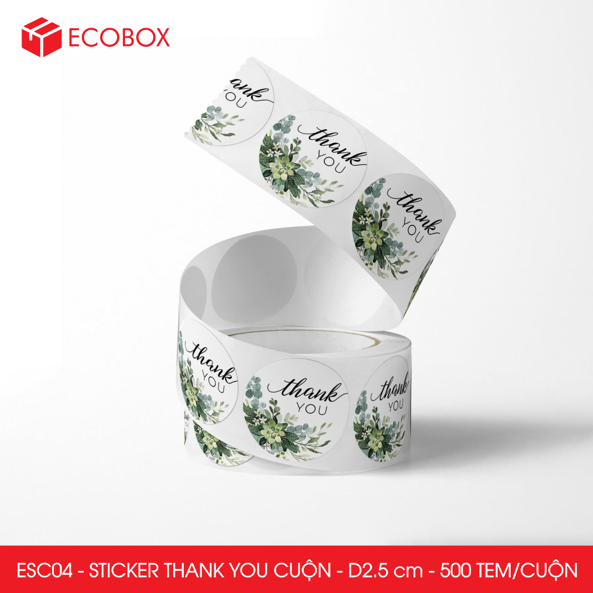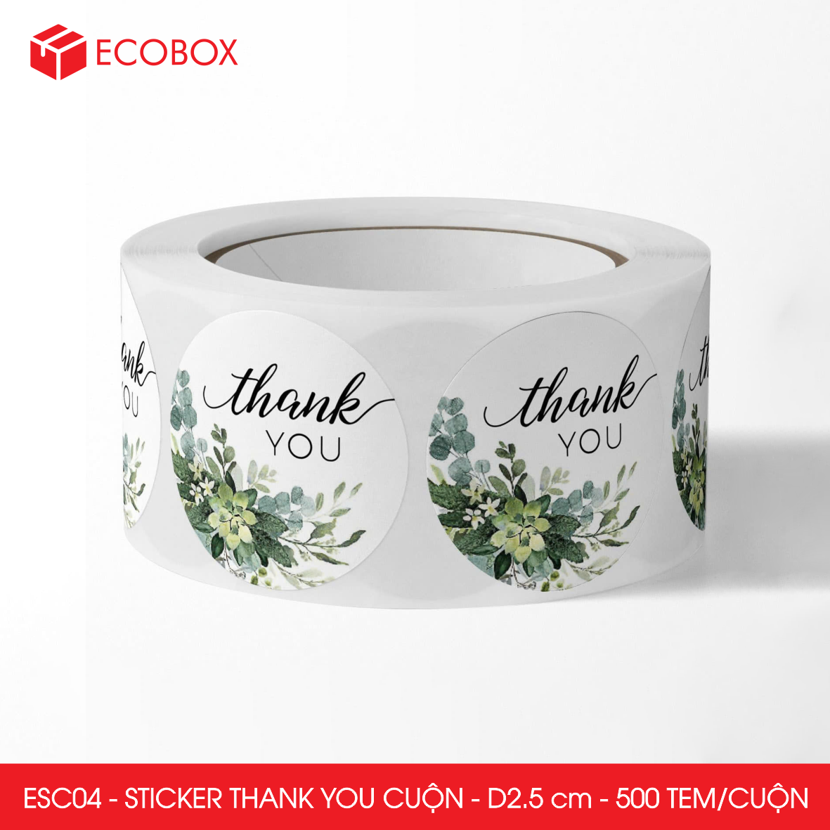 ESC04 - Cuộn Sticker Thank You tròn - Một thiết kế - 2.5cm - [500 tem/cuộn]