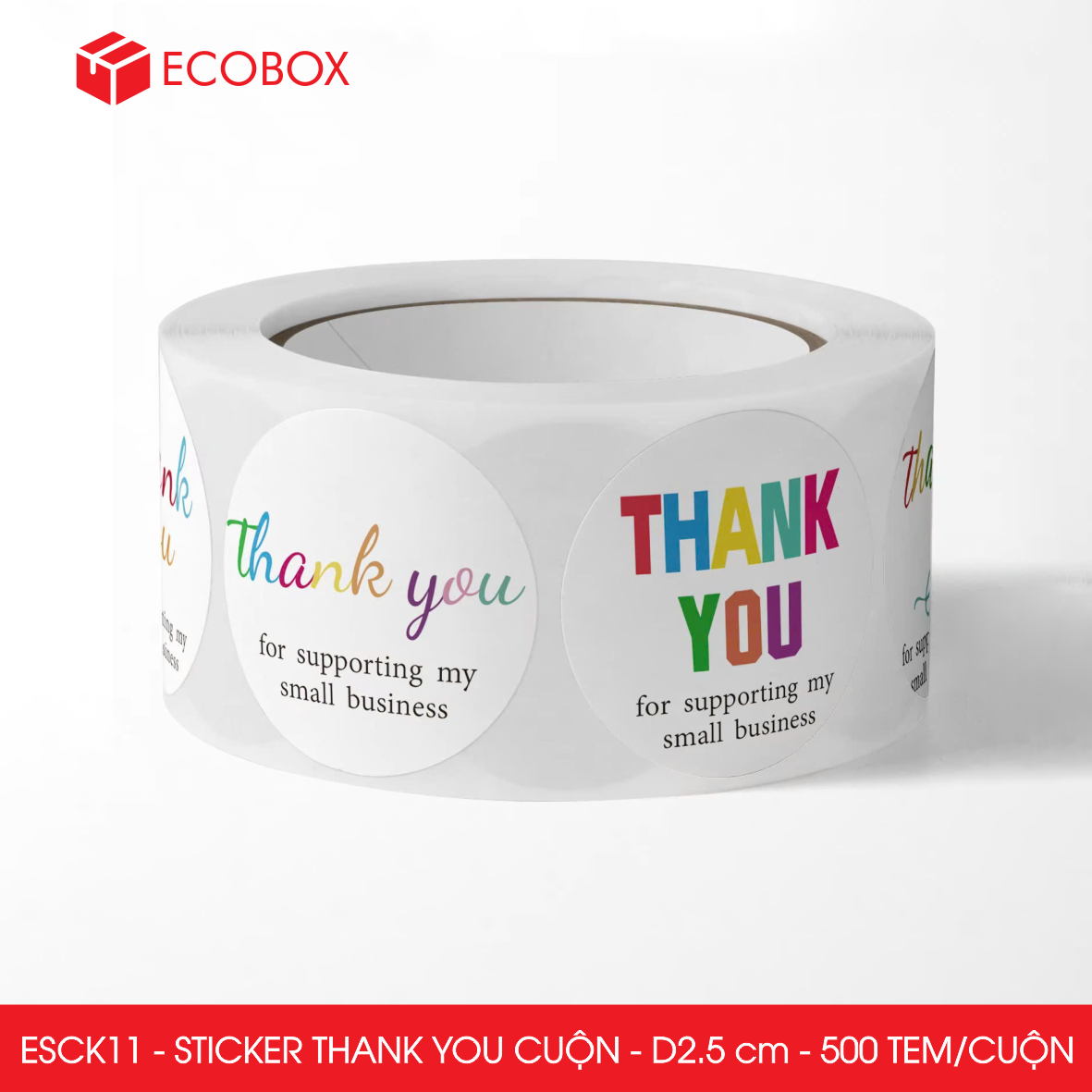 ESCK11 - Cuộn Sticker Thank You tròn - Nhiều thiết kế - 2.5cm - [500 tem/cuộn]