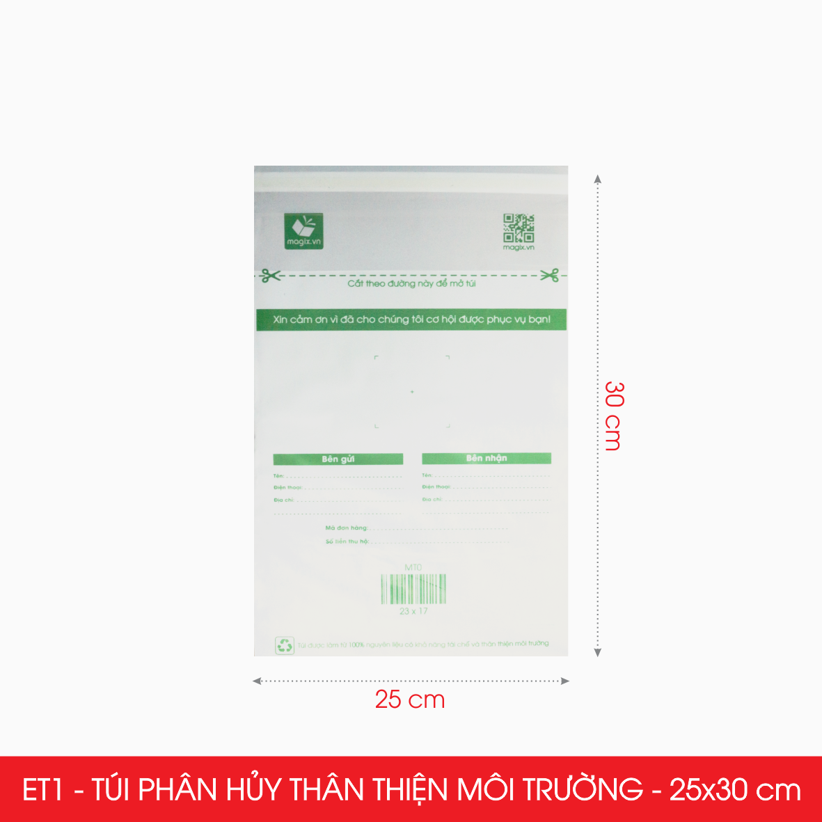 - Thân thiện môi trường - Túi được sản xuất từ nguyên liệu tái chế và có khả năng tự phân hủy.