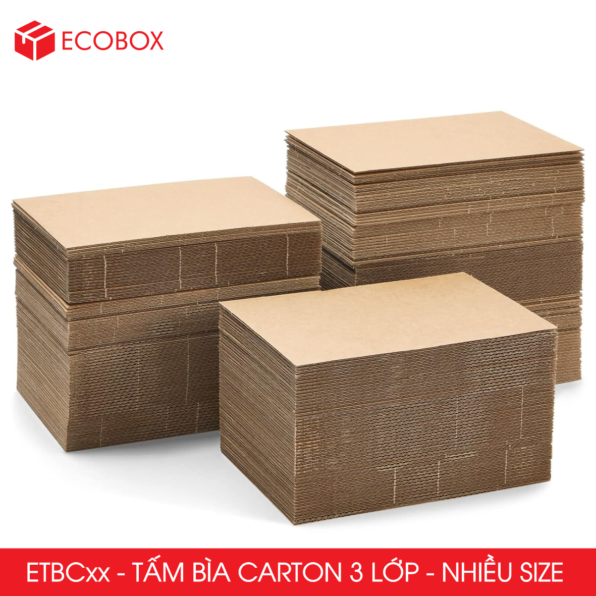 - Bìa các tông cứng cáp: Mỗi tấm bìa được làm từ giấy carton 3 lớp với sóng B dày 3mm, cung cấp lớp đệm vượt trội, nâng cao khả năng chịu lực, đảm bảo độ tin cậy cho nhu cầu vận chuyển và trang trí